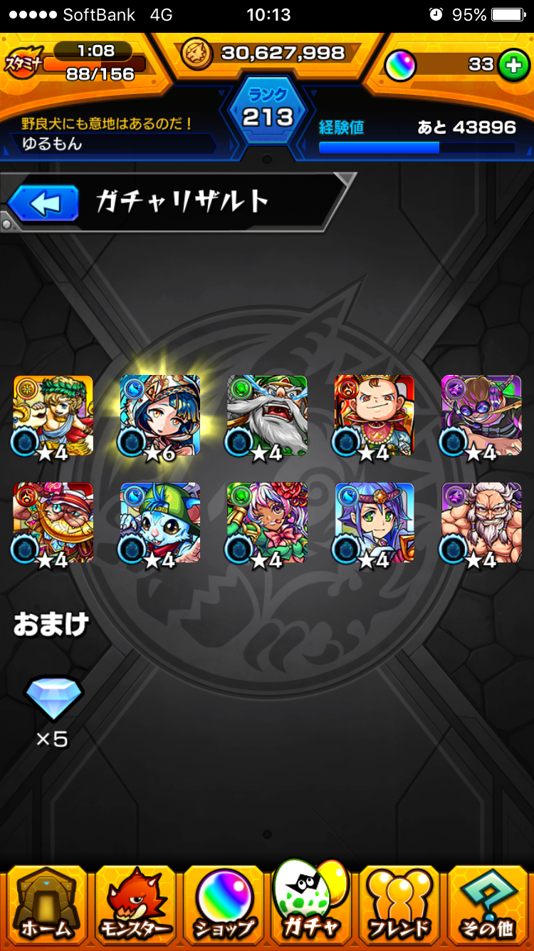 そんでもって、今月のモン玉ガチャはログイン勢してたこともあってLv3で引きました。