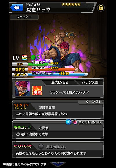 それと、ウル4コラボのリュウの進化と神化のステータスが来てました。
