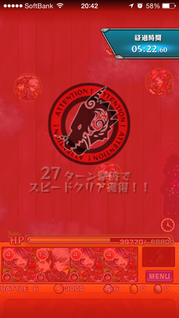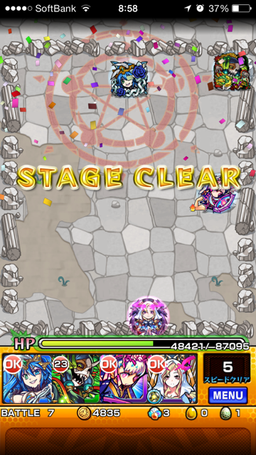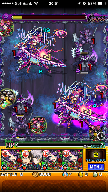 見にくいですがリボン3人パ。サクサク進みすぎてボスまでにSSたまりきらないしなによりHPが少なすぎる。笑